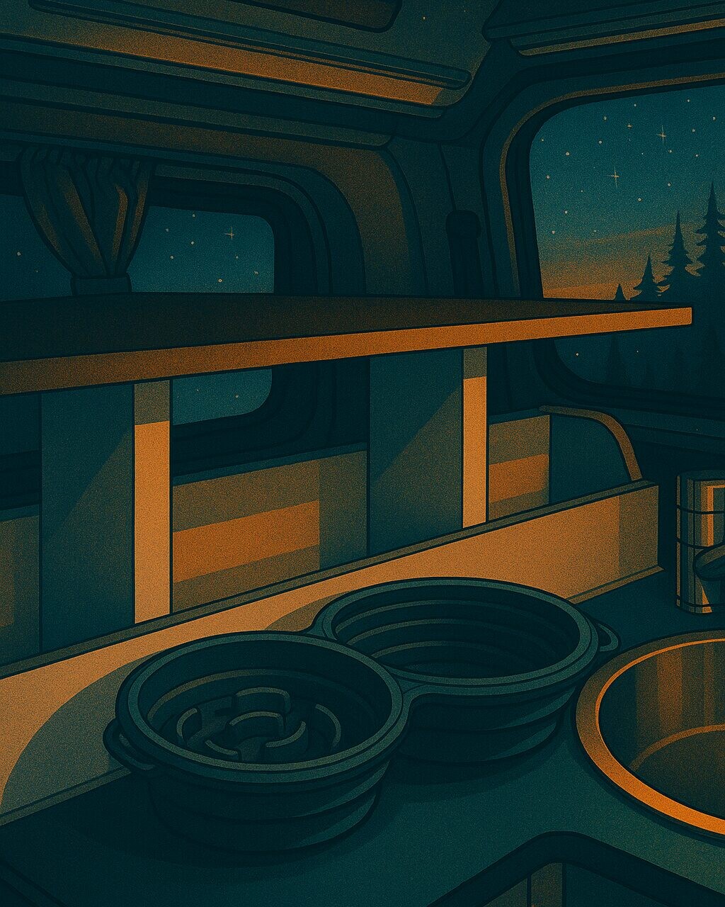 Was wir daran mögen? Er ist kompakt, schnell einsatzbereit und bringt dank Slow-Feeder-Struktur Ruhe in hastige Fressmomente. Zusammengeklappt verschwindet er in Sekunden in der Staufläche der Camping-Küche unseres Ford Nugget (L1) – und liegt beim nächsten Stopp sofort wieder bereit.