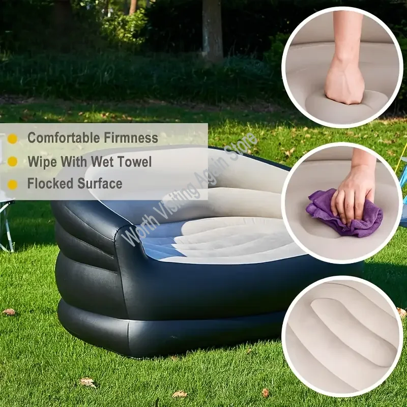 Bequemes aufblasbares Outdoor-Sofa für Garten, Camping und Strand – schnell aufgeblasen, robust, leicht zu reinigen und kompakt verstaubar.