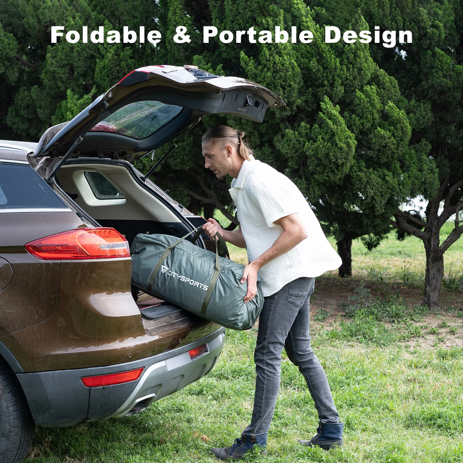 Inklusive Luftpumpe: Ventil anschließen und per Knopfdruck/Handpumpe aufpumpen – ganz ohne Stangenaufbau. Zum Abbauen Auslassventil öffnen, zusammenfalten, Luft entweichen lassen – das Packmaß reduziert sich schnell. Spart Zeit gegenüber herkömmlichen Zelten; perfekt für Einsteiger und Familien.