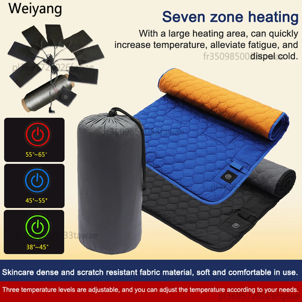 USB-Heizmatte fürs Winter-Camping – 7-Zonen, 3 Stufen, faltbar (ca. 198 × 62 cm)